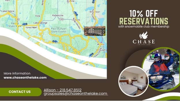 Located right on Leech Lake in Walker, MN, Chase on the Lake is your ultimate snowmobiling headquarters! With direct trail access to hundreds of miles of groomed routes right from our property, you can gear up and ride without ever loading the trailer